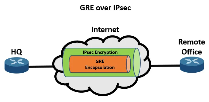 - GRE (Generic Routing Encapsulation): A tunneling protocol that can carry multicast routing updates, but offers no encryption.