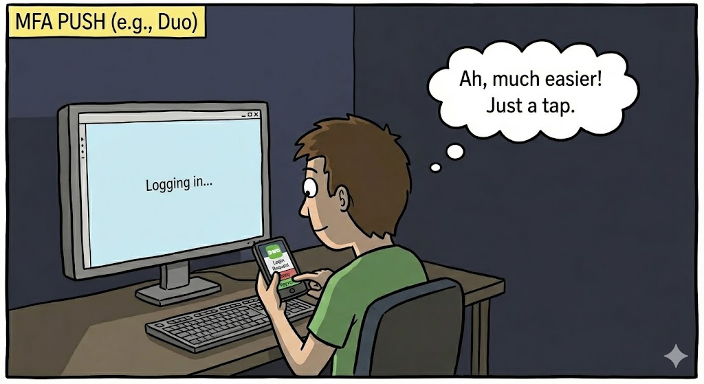 Push based MFA — where your phone pops up an “Approve/Deny” prompt — brought usability and speed. No more typing codes; just tap to authenticate.