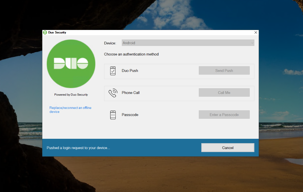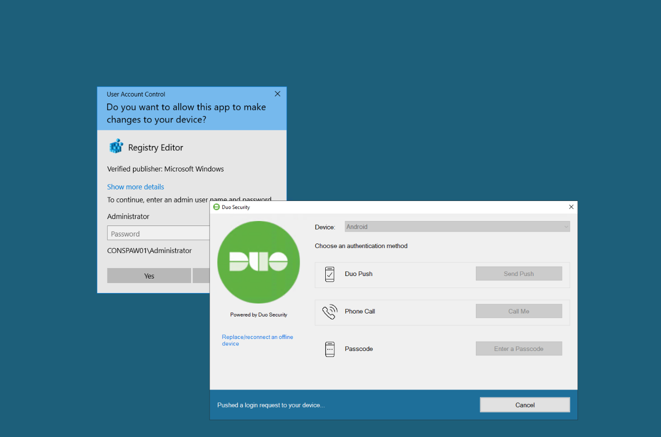 Result: Standard Windows and RDP logins prompt for Duo Push.