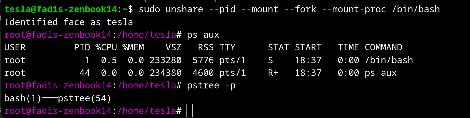 - PID isolates process IDs. The container sees its own PID 1 and has no idea about host processes.